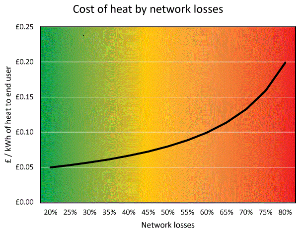 As I mentioned in my previous post, cost of heat on DH schemes is directly tied to system efficiency. The more efficient the system, the less fuel is needed to meet the heat requirements of the customers. And of course the reverse is also true: lower efficiency means higher cost of heat. This relationship between efficiency and cost is hugely important: it’s real cash, coming from residents to pay their heating bills and from the landlord or ESCO to pay the fuel bill.